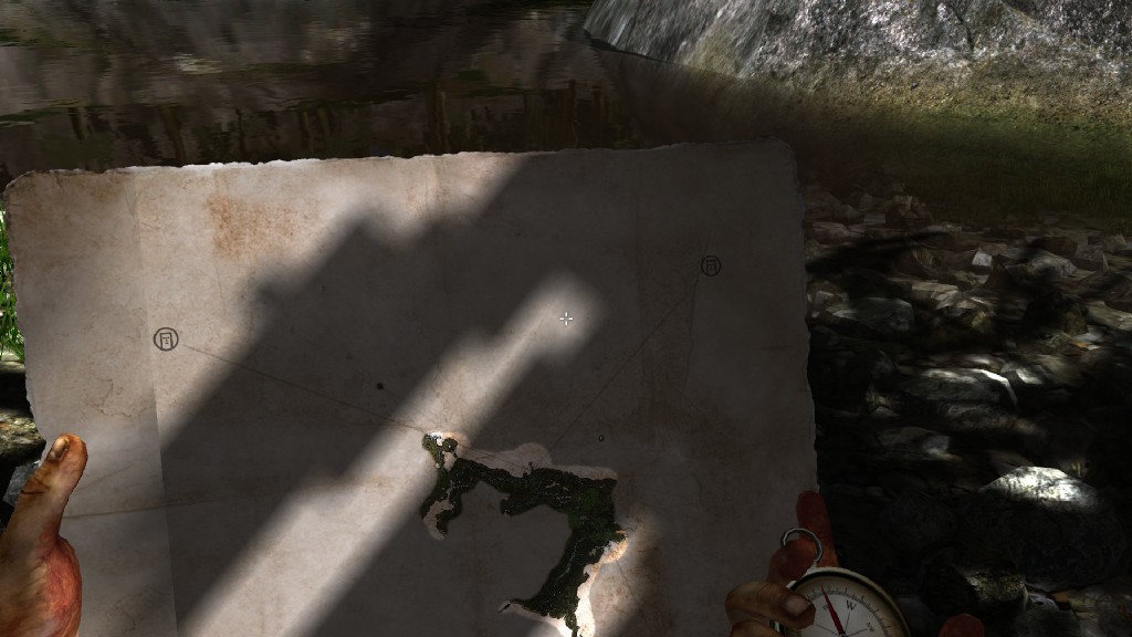 Miasmata’s map is manual, and if you don’t know where you are – if you are in the woods with no landmarks visible – then you are lost. You can find maps that fill in blank spaces for you, but if you don’t have a map then you must start to triangulate your location using the landmarks you do know about to help you. Location in Miasmata (as in Morrowind, as in survival Minecraft, as in Dark Souls) is a resource, something that can be lost, something that requires significant player effort to maintain.