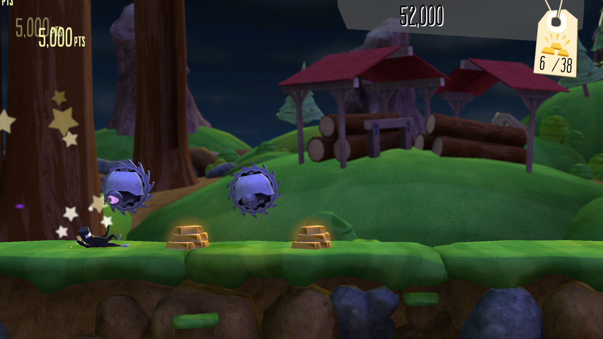 Not enough games have a dance button. You aren’t told about it until a fair few levels have passed beneath your constantly running feet, but there it is: you can dance. Dancing can happen at any time, on a flat surface; the animation lasts a fixed length of time, and can’t be interrupted to slide or jump, so it has to be timed well to avoid dancing to your death. Each of the characters you find – there are seven in total, with five found by completing optional levels – has several different dance animations. They are joyous.